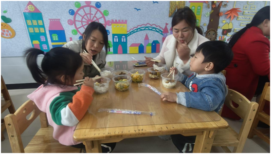 隨后,家長代表深入班級參與陪餐,不僅親嘗餐食口感、確認(rèn)溫度與份量,還細(xì)致觀察教師餐前衛(wèi)生指導(dǎo)、幼兒自主進(jìn)餐等場景,沉浸式了解園所膳食服務(wù)全流程。園方同步收集家長對菜品口味、營養(yǎng)搭配的意見建議,并開展膳食滿意度調(diào)查。