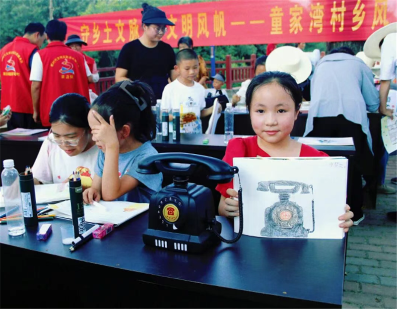 童家灣村的孩子們化身“小畫家”,手持畫筆,認(rèn)真勾勒心中的家鄉(xiāng)。有的孩子畫出村口潺潺流淌的小河,有的為童家灣村創(chuàng)作詩(shī)歌,還有的將村里新建的文化廣場(chǎng)搬進(jìn)畫卷。稚嫩的筆觸下,既有鄉(xiāng)村的自然本真,也有新時(shí)代鄉(xiāng)村的發(fā)展新貌。
