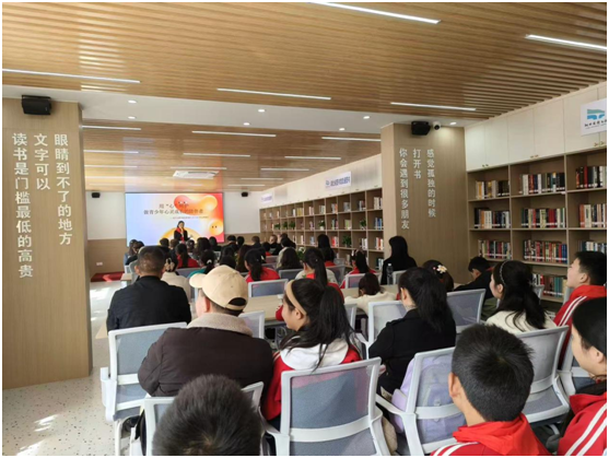 與此同時,在嶄新的“大洪山書苑”內(nèi),全國司法行政系統(tǒng)心理矯治專家賈俊為師生家長帶來了一場別開生面的心理輔導講座。憑借30年心理工作實踐經(jīng)驗,賈俊深入闡釋了閱讀與心靈成長的內(nèi)在聯(lián)系,精準剖析了鄉(xiāng)村兒童的心理特點與需求。她重點探討了領(lǐng)讀者在鄉(xiāng)村兒童成長中的關(guān)鍵角色定位,詳細講解了如何根據(jù)鄉(xiāng)村兒童的心理特點設(shè)計并開展有效的領(lǐng)讀活動。最后,她還為在場的教育工作者和家長提供了實用的自我賦能方法,幫助領(lǐng)讀者在陪伴孩子成長的過程中獲得自我提升。整場講座將心理健康教育與閱讀推廣深度融合,為鄉(xiāng)村兒童的健康成長提供了專業(yè)支撐。
