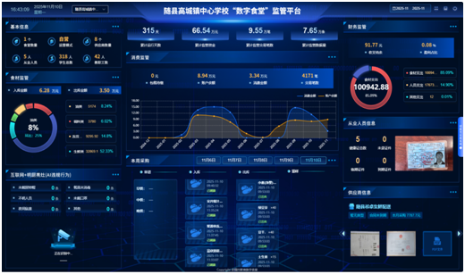 作為省級放心食堂,隨縣高城鎮(zhèn)中心學(xué)校并未滿足于既有榮譽,而是主動擁抱變革,以食品安全與膳食經(jīng)費突出問題專項整治為契機,于2024年12月啟動數(shù)字食堂建設(shè),并于2025年春季學(xué)期正式投入運行。這座建筑面積達(dá)1050平方米、可容納全校師生同時就餐的食堂,正經(jīng)歷一場深刻的“數(shù)字蝶變”,通過食材、消費、財務(wù)、監(jiān)管等系統(tǒng)的全面升級,為318名學(xué)生和42名教職工構(gòu)筑起一道堅實、透明、高效的餐飲服務(wù)保障線。