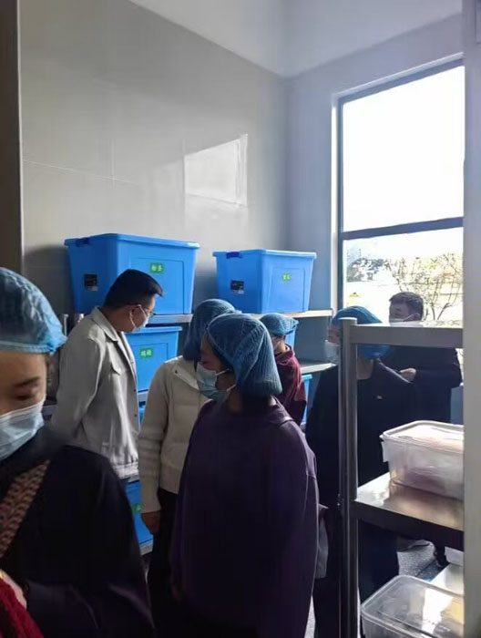 隨后,家長代表們穿戴好食堂準(zhǔn)備的一次性帽子、口罩和鞋套,在工作人員的帶領(lǐng)下走進(jìn)食堂核心區(qū)域。