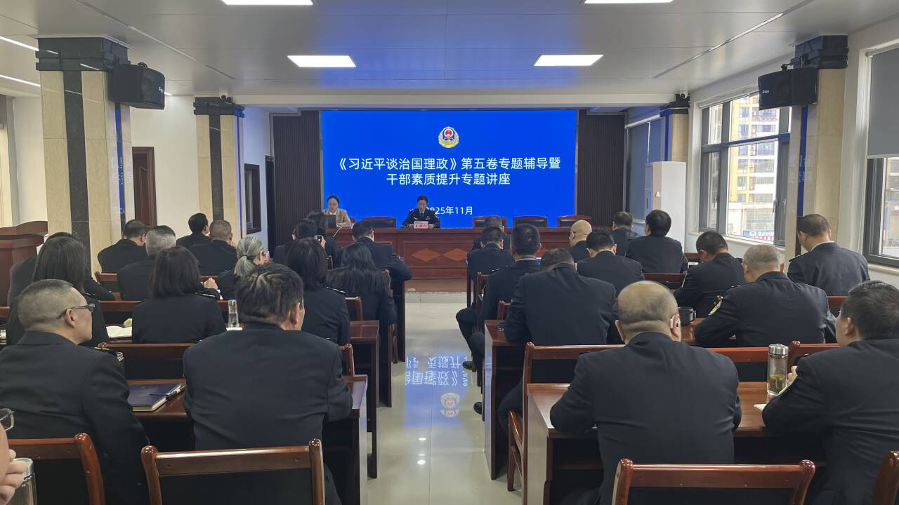 夏藝銘教授以“為何學(xué)”“學(xué)什么”“怎么學(xué)”作為邏輯主線,逐步展開授課內(nèi)容。重點從“深刻認(rèn)識《習(xí)近平談治國理政》第五卷的時代價值和重要意義、完整把握《習(xí)近平談治國理政》第五卷的核心要義和精神實質(zhì)、全面落實《習(xí)近平談治國理政》第五卷的學(xué)習(xí)目標(biāo)和實踐要求”這三個關(guān)鍵方面進行深入解讀。夏教授系統(tǒng)梳理了《習(xí)近平談治國理政》第五卷的理論框架,深入剖析其豐富內(nèi)涵,詳細(xì)闡述了黨的最新理論成果以及這些成果在馬克思主義發(fā)展史上占據(jù)的重要地位。夏教授的講解主題鮮明突出,內(nèi)容詳實豐富,既有理論的深度和高度,又列舉了大量貼合實際的實踐案例。通過深入淺出的講解方式,為在場全體執(zhí)法人員帶來了一場兼具思想性與指導(dǎo)性的精神洗禮。