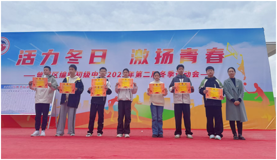 裁判長宣布了本屆運(yùn)動會的比賽成績和獲獎班級。校領(lǐng)導(dǎo)為獲得總分前列的班級和各項比賽獲獎運(yùn)動員頒發(fā)了獎狀。