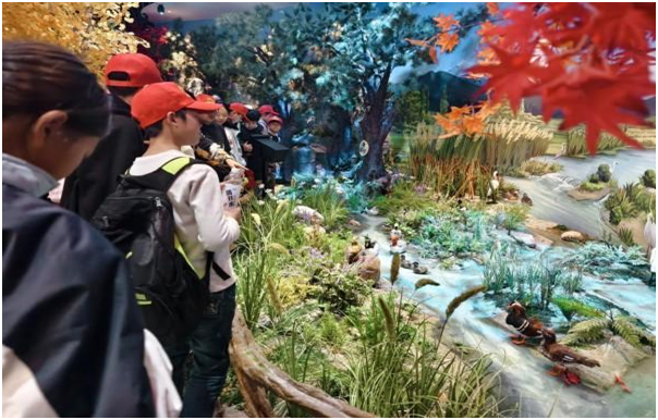 館內(nèi)豐富多樣的展示形式令同學(xué)們印象深刻。宏大的影像敘事與珍貴的圖文史料清晰的展示了淮河濕地的起源與變遷歷程。特別是動(dòng)感單車、光影美學(xué)體驗(yàn)區(qū),同學(xué)們通過玩“轉(zhuǎn)”,近距離了解淮河源頭節(jié)點(diǎn),“觀察”珍稀動(dòng)植物,沉浸式感受濕地生態(tài)的獨(dú)特魅力。