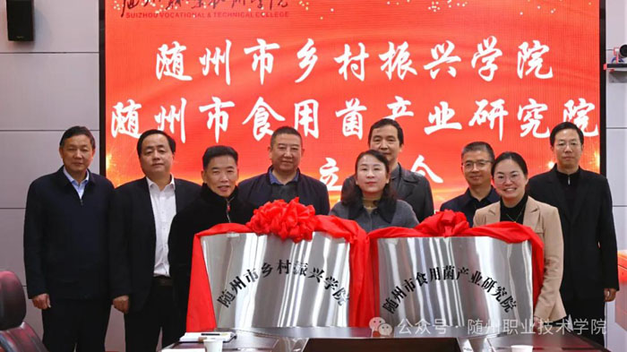 11月12日上午,隨州市鄉(xiāng)村振興學院與隨州市食用菌產(chǎn)業(yè)研究院成立大會在隨州職業(yè)技術學院舉行。隨州職業(yè)技術學院黨委書記李建偉,市科技局黨組成員、副局長孫登斌,市農(nóng)業(yè)農(nóng)村局黨組成員、總經(jīng)濟師李進山,隨州職業(yè)技術學院黨委委員、副校長梁學軍、鄒厚虧,校工會主席張鳳成等出席大會,香菇學院師生代表共同見證了這一重要時刻。
