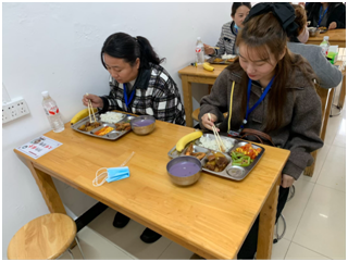 最后,家長(zhǎng)們有序掃碼就餐,直觀感受菜品的口感、溫度與分量,飯后紛紛給出好評(píng)。