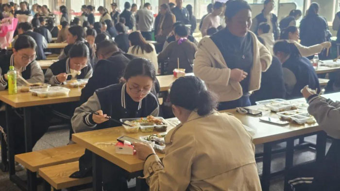 成人禮結(jié)束后,學(xué)校還開展了食堂開放日活動。活動現(xiàn)場,食堂工作人員提前準(zhǔn)備、精心烹飪,許多家長與學(xué)生一同在校園共享溫暖可口的午餐,場面溫馨動人。這一舉措既體現(xiàn)了學(xué)校的人文關(guān)懷,也讓參與成人禮的家長切實感受到二中教育的溫度和擔(dān)當(dāng),與成人禮主題“感恩 責(zé)任 奮斗 夢想”形成了美好的呼應(yīng)。