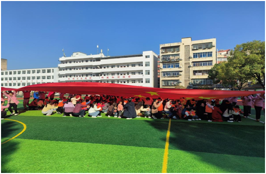 最后的“星球大戰(zhàn)”與“歌唱祖國”環(huán)節(jié)最為感人。在“星球”傳遞中,家長與孩子緊密相依,共同完成任務(wù);而當巨幅國旗在全體參與者的頭頂上緩緩展開,大家齊聲高唱《歌唱祖國》,鏗鏘的旋律回蕩在校園上空,愛國情懷在每個人心中激蕩。