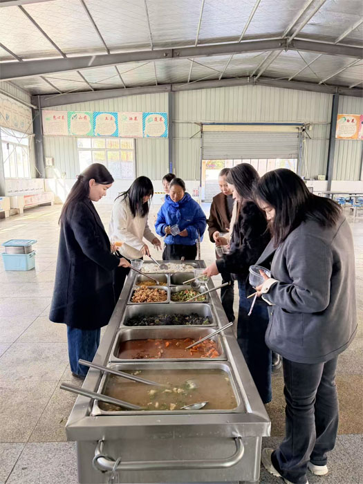 活動現(xiàn)場,學校相關負責人首先向家長代表們詳細介紹了食堂的食材采購渠道、食品加工流程、餐具消毒規(guī)范及每日菜品的營養(yǎng)配比原則,著重強調學校始終將學生飲食安全與營養(yǎng)健康放在首位,全力守護學生舌尖上的安全。中午就餐時段,家長代表們有序進入餐廳,餐桌上早已擺放好豐富多樣的菜品:香氣濃郁的羊肉燉胡蘿卜,軟爛入味;鮮嫩可口的木耳炒瘦肉,營養(yǎng)均衡;清爽解膩的清炒土豆絲與清炒青菜,色澤鮮亮;外酥里嫩的小酥肉,香氣撲鼻;搭配清爽的香菇湯,解膩暖心。此外,學校還為每位學生和家長代表準備了新鮮的飯后水果——蘋果,補充維生素的同時,為用餐體驗畫上圓滿句號。