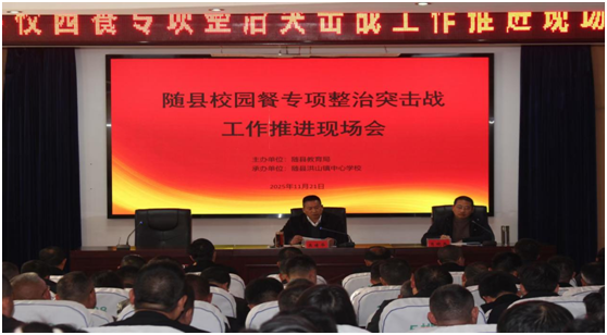 隨州新聞網(wǎng)訊 (通訊員孫祥軍)11月21日,隨縣校園餐專項整治突擊戰(zhàn)工作推進現(xiàn)場會在洪山鎮(zhèn)中心學(xué)校隆重召開。縣教育局主要領(lǐng)導(dǎo)及各股室負責(zé)人,全縣各中心學(xué)校校長、各中小學(xué)、幼兒園校(園)長代表共計150余人齊聚一堂,通過“現(xiàn)場觀摩學(xué)樣板、交流發(fā)言促提升、工作通報明底數(shù)、領(lǐng)導(dǎo)講話定方向”的閉環(huán)模式,凝聚共識、匯聚合力,推動隨縣校園食品安全工作提質(zhì)增效。