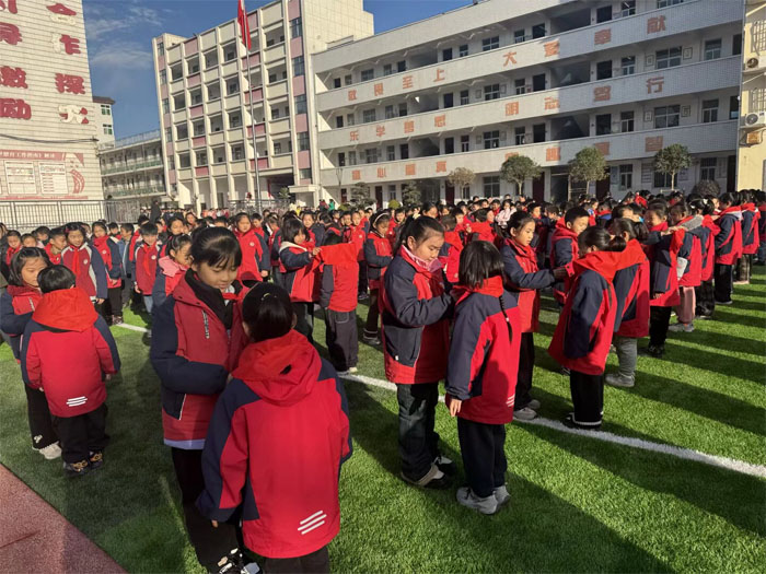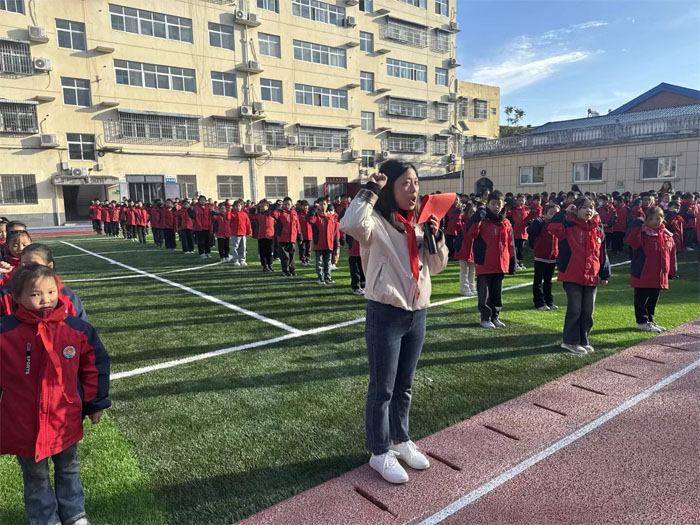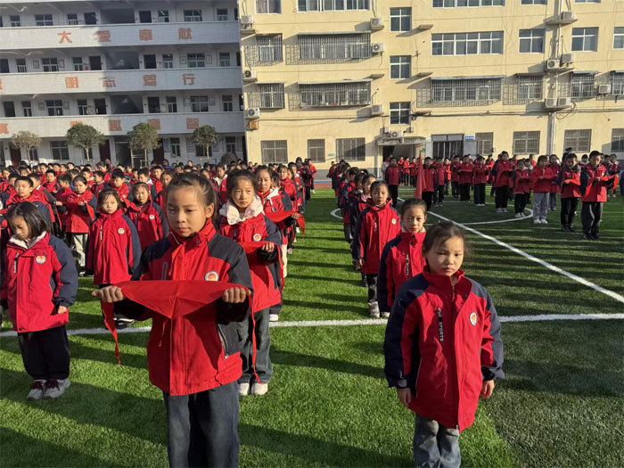 大隊(duì)輔導(dǎo)員宣讀了新隊(duì)員名單,二年級的新生們昂首挺胸,滿懷期待。伴隨著《紅領(lǐng)巾飄起來》的旋律,老隊(duì)員為新隊(duì)員佩戴上鮮艷的紅領(lǐng)巾。這一刻,新隊(duì)員們的臉上洋溢著自豪的笑容,紅領(lǐng)巾在胸前迎風(fēng)飄揚(yáng),象征著責(zé)任與理想的傳承。