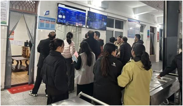 隨后,全體人員來到學生食堂,現(xiàn)場就數(shù)字食堂建設(shè)運營中的實際問題展開研討,分析系統(tǒng)操作、數(shù)據(jù)同步、功能適配等方面的難點堵點,最后形成整改共識與優(yōu)化方案。