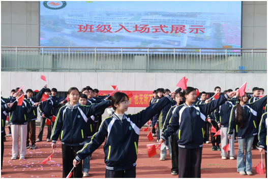 開幕式上,初中部集體風(fēng)紀(jì)跑操拉開序幕,各班方陣步伐整齊、口號鏗鏘,盡顯少年意氣。隨后各班學(xué)子身著統(tǒng)一著裝,以創(chuàng)意隊形和嘹亮口號依次入場,舞蹈、歌唱等特色展示更添活力。
