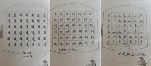 活動現(xiàn)場,同學們沉著運筆,氣韻初顯。低年級學生的筆畫雖顯稚嫩,卻工整認真;高年級學生的作品已初具章法,顯現(xiàn)出對力度與節(jié)奏的初步把握。一幅幅作品在陽光下鋪展,不僅展示了書寫技能的進步,更透露出傳統(tǒng)文化的無聲浸潤。