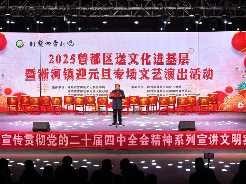 通訊員(吳思洋、王濤)霜華凝冬韻,歡歌慶新元。為深入學(xué)習(xí)貫徹黨的二十屆四中全會(huì)精神和習(xí)近平文化思想,賡續(xù)中華文脈,豐富基層群眾精神文化生活,12月15日,“荊楚四季村晚——2025曾都區(qū)送文化進(jìn)基層暨淅河鎮(zhèn)迎元旦專場(chǎng)文藝演出”在淅河鎮(zhèn)九通農(nóng)貿(mào)市場(chǎng)隆重舉行。整場(chǎng)活動(dòng)以文藝為橋、以精神為魂,將政策宣講與節(jié)日歡慶深度融合,千余名干部群眾齊聚一堂,在歡聲笑語(yǔ)中感受文化魅力、領(lǐng)悟全會(huì)精神,共同迎接2026年元旦的到來。