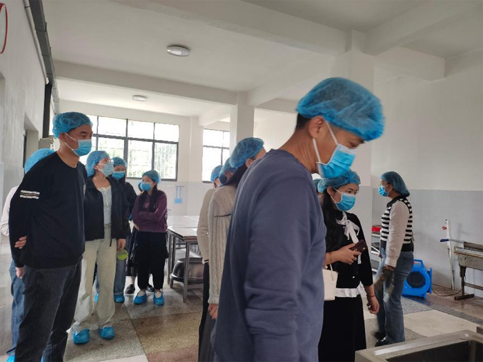 活動伊始,食堂負(fù)責(zé)人帶領(lǐng)家長代表們參觀了食材儲存區(qū)、烹飪操作間、餐具消毒間等區(qū)域。干凈整潔的操作環(huán)境、分類擺放的新鮮食材、規(guī)范嚴(yán)格的消毒流程,讓家長們連連稱贊。負(fù)責(zé)人還詳細(xì)介紹了食堂的食材采購渠道、菜品搭配原則,著重強(qiáng)調(diào)每日食譜均根據(jù)小學(xué)生生長發(fā)育需求和學(xué)生推薦菜品科學(xué)定制,確保葷素均衡、營養(yǎng)全面。