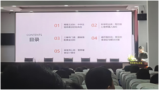 講座現(xiàn)場(chǎng),呂孝紀(jì)營(yíng)養(yǎng)師化身親切易懂的 “營(yíng)養(yǎng)導(dǎo)師”,從中學(xué)生生長(zhǎng)發(fā)育的特殊需求出發(fā),以全天一日三餐的能量供給和營(yíng)養(yǎng)素配比為核心,細(xì)致拆解了該年齡段所需的主食、蔬菜、肉蛋奶等各類食物的適宜種類與攝入量。他結(jié)合配餐 “多樣化、均衡化、適量化” 的核心原則,用通俗的語(yǔ)言講解了如何通過合理搭配食材,實(shí)現(xiàn)營(yíng)養(yǎng)互補(bǔ),滿足身體發(fā)育和學(xué)習(xí)生活的雙重需求。