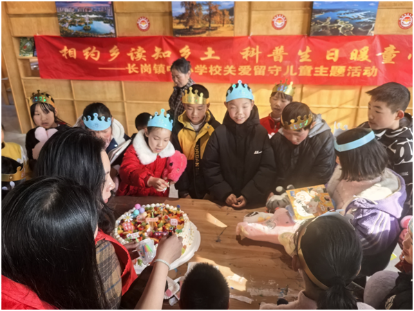 科普講座結(jié)束后,溫馨的集體生日會(huì)正式拉開帷幕。伴隨著歡快的生日歌,孩子們一起許愿、吹蠟燭、分享美味的蛋糕。活動(dòng)特別設(shè)置了親情連麥環(huán)節(jié),孩子們與在外務(wù)工的家長(zhǎng)視頻通話,傾訴思念之情。不少孩子說(shuō)著心里話,眼中泛起了淚光,現(xiàn)場(chǎng)氛圍既溫馨又感人。