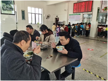 活動(dòng)中,家長(zhǎng)們不僅可以參觀食堂后廚、查驗(yàn)食材采購(gòu)記錄,還能全程了解菜品從清洗、加工到烹制的完整流程。干凈整潔的操作環(huán)境、科學(xué)搭配的營(yíng)養(yǎng)膳食,贏得了家長(zhǎng)們的廣泛認(rèn)可。陪餐期間,親子共坐一桌,輕松交流,孩子們?cè)诩议L(zhǎng)的陪伴下也展現(xiàn)出更加有序、文明的用餐習(xí)慣。