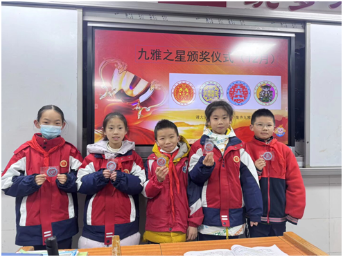 隨州新聞網(wǎng)訊 (通訊員孫海林)1月5日,曾都區(qū)實驗小學12月份“九雅之星”頒獎儀式如期舉行。當輔導員們?yōu)楂@獎學生佩戴上學校特制的剪紙文創(chuàng)九雅章時,孩子們的臉上露出自豪的笑容。“九雅”爭章評選也彰顯著學校以九雅德育為抓手,深耕養(yǎng)成教育、助力優(yōu)化營商環(huán)境的育人初心。