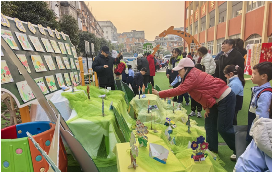 展覽現(xiàn)場,孩子們化身“小小藝術使者”,向家長講述創(chuàng)作故事,展現(xiàn)自信風采,文明觀展的氛圍與溫馨互動的場景相映成趣,勾勒出家校共育、美美與共的生動畫面。此次活動以藝術為橋,不僅激發(fā)了幼兒的創(chuàng)造力與審美力,更通過開放、共享的校園文化實踐,為優(yōu)化區(qū)域人文環(huán)境、涵養(yǎng)城市文明風尚注入了清新活力。