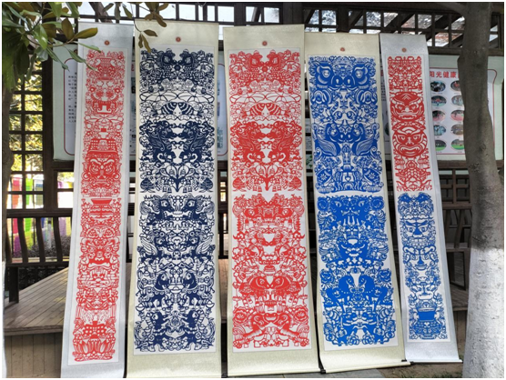 剪紙展區(qū)內(nèi),3.2米長(zhǎng)卷《騏驥馳騁迎新年》以馬年春晚吉祥物為主題,學(xué)生以剪紙形式呈現(xiàn)多組“萌馬”形象,表達(dá)新年祝愿!抖Y樂隨州文明畫卷》以隨州青銅文化為核心,將非遺剪紙技藝與地方歷史文化相融合,展現(xiàn)隨州深厚底蘊(yùn)。相關(guān)課程的開展有效提升了學(xué)生動(dòng)手能力,增強(qiáng)了文化自信。