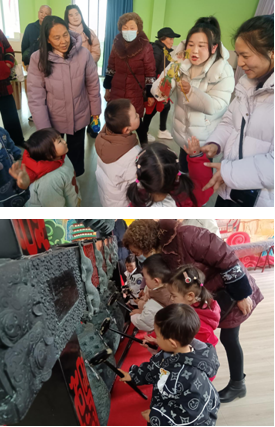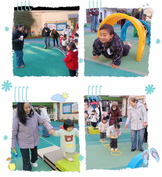 活動現(xiàn)場童趣盎然,四大特色環(huán)節(jié)讓萌娃們樂在其中。卓怡婷老師帶來手工粘貼畫《彩虹小馬》,彩紙、固體膠在孩子們手中變身靈動萌寵,創(chuàng)意靈感與動手能力同步提升;李隨旋老師的科學活動《氣球不倒翁》充滿奇思妙想,寶貝們在反復嘗試中探尋平衡原理,歡聲笑語里播下科學探索的種子。戶外場地中,邵海云老師帶領(lǐng)的《摘果子》體智能游戲熱鬧非凡,孩子們奔跑跳躍,在運動中收獲快樂與活力。隨后,曹夢嬌老師帶領(lǐng)大家探訪園所環(huán)境——古雅的編鐘教室浸潤著傳統(tǒng)文化氣息,多功能室內(nèi)繪本、皮影道具、編織機等讓孩子們目不暇接,忍不住駐足觸摸、好奇探索。