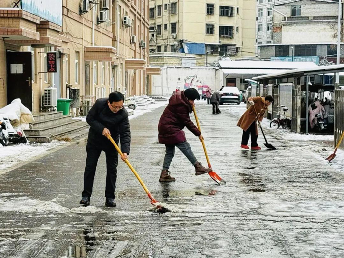 鐵鍬起落之間,積雪被一寸寸清除;反復(fù)踏查之中,暗冰被逐一排除。黨員干部帶頭在最吃力、最關(guān)鍵的位置作業(yè),教師們協(xié)同配合、分段推進(jìn)。白雪之中,身影并不張揚(yáng),卻格外堅(jiān)定;寒風(fēng)之下,行動(dòng)并不喧嘩,卻格外有力。隨著作業(yè)推進(jìn),一條條安全通道逐漸貫通,校園秩序在嚴(yán)寒中重新建立。