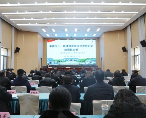 報(bào)告會(huì)上,余洋教授以“乘勢(shì)而上、持續(xù)推進(jìn)中國(guó)式現(xiàn)代化的綱領(lǐng)性文獻(xiàn)——學(xué)習(xí)貫徹黨的二十屆四中全會(huì)精神”為主題,圍繞道路之問(wèn)、方位之問(wèn)、發(fā)展之問(wèn)、落實(shí)之問(wèn)四個(gè)關(guān)鍵維度,對(duì)全會(huì)精神進(jìn)行了系統(tǒng)闡述和深入解讀。整場(chǎng)報(bào)告邏輯嚴(yán)密、內(nèi)涵豐富,既有理論高度又有實(shí)踐深度,為全體干警精準(zhǔn)理解全會(huì)精神核心要義提供了有力指導(dǎo)。