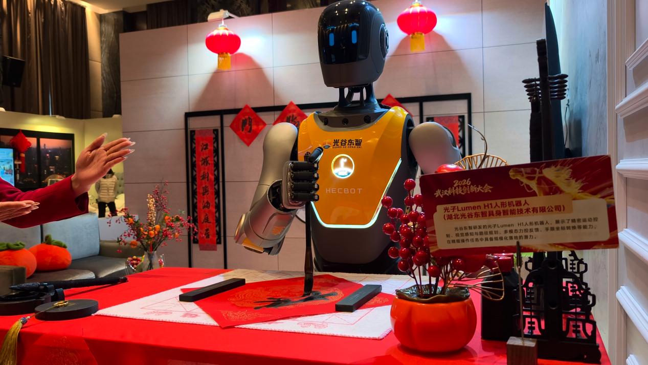 “光谷東智”的年輕人說:“為了找到一支合適的毛筆,我們試過十幾種形狀。看到它寫出第一個完整的福字時,很欣慰!