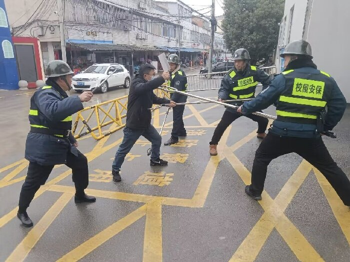 活動(dòng)現(xiàn)場(chǎng),一場(chǎng)模擬“歹徒強(qiáng)行闖入”的最小單元防暴處突演練拉開(kāi)序幕。學(xué)校安保人員與應(yīng)急小組成員迅速響應(yīng),利用防暴器械協(xié)同配合,成功將“歹徒”制服。整個(gè)演練過(guò)程反應(yīng)迅速、處置高效,有效檢驗(yàn)了校園突發(fā)事件的應(yīng)急響應(yīng)能力。