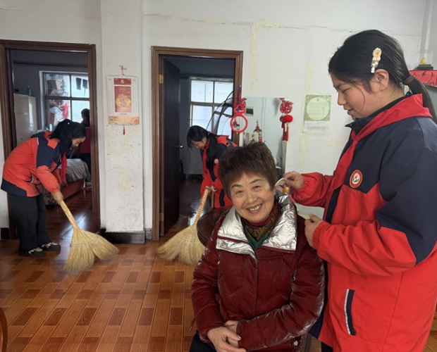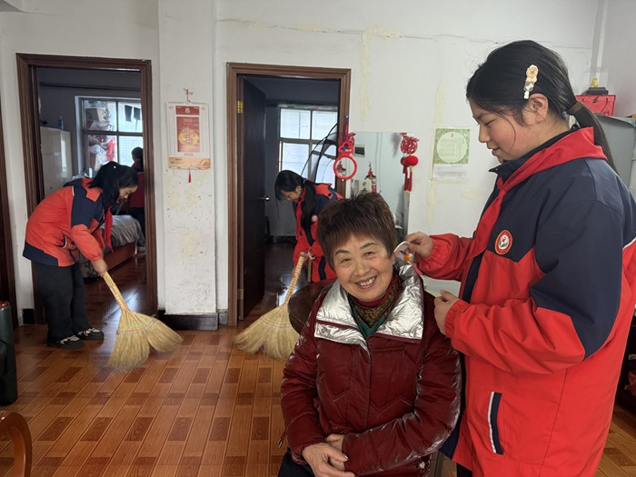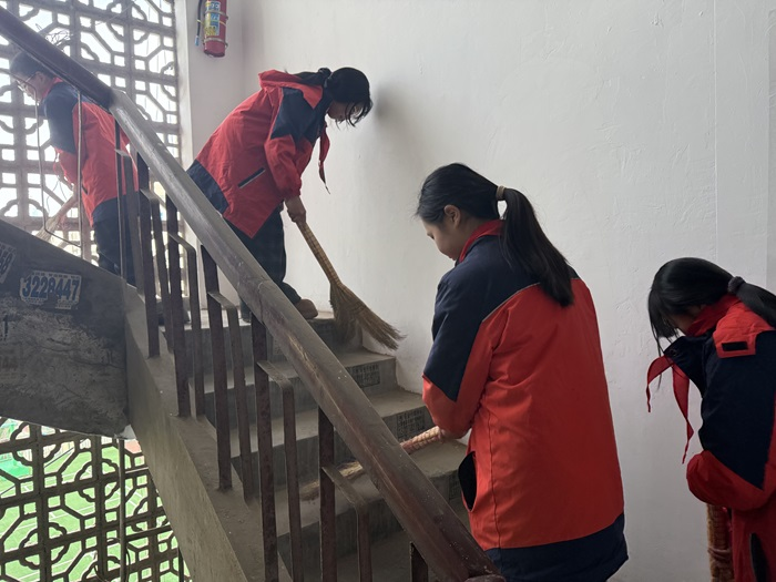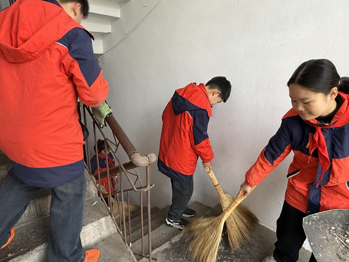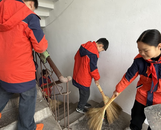 活動中,同學(xué)們分組行動。關(guān)愛老人組走進(jìn)小區(qū)老人家中,幫忙打掃衛(wèi)生、整理房間,陪老人聊天解悶。樓道清掃組對小區(qū)樓梯進(jìn)行細(xì)致清理,掃除垃圾、擦拭扶手,不放過一個角落。校園周邊組撿拾綠化帶雜物,擺放亂停放的共享單車,讓環(huán)境更加整潔有序。