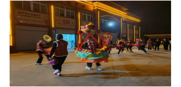 傳統(tǒng)民俗與特色舞蹈輪番登場,成為本場晚會的一大亮點。節(jié)目單中經(jīng)典的民俗表演《劃旱船》韻味十足,演員們身著統(tǒng)一演出服,操控著色彩斑斕的彩船道具輾轉(zhuǎn)騰挪,步伐靈動多變,生動演繹出傳統(tǒng)民俗的獨特魅力,讓居民們在家門口感受了非遺文化的熏陶。緊隨其后,斗笠舞《山里姑娘真叫美》《阿瓦人民唱新歌》接連上演,舞者們頭戴斗笠、身姿曼妙,將田園風(fēng)情與民族韻味完美融合;筷子舞《阿哥阿妹》節(jié)奏明快,演員們手持筷子擊節(jié)而舞,盡顯靈動俏皮。