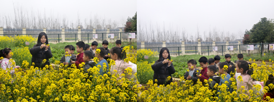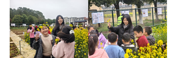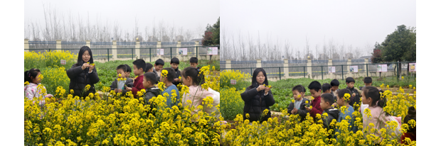 春風送暖,萬物復蘇,校園勞動基地內(nèi)綠意盎然、繁花點點;顒右潦,美術(shù)走教老師帶領(lǐng)孩子們漫步田間地頭,細心觀察春日里的花草枝葉,引導大家用雙眼發(fā)現(xiàn)自然之美,用雙手撿拾安全、環(huán)保的自然材料,讓孩子們在親近自然的過程中感受春天的生機與詩意。