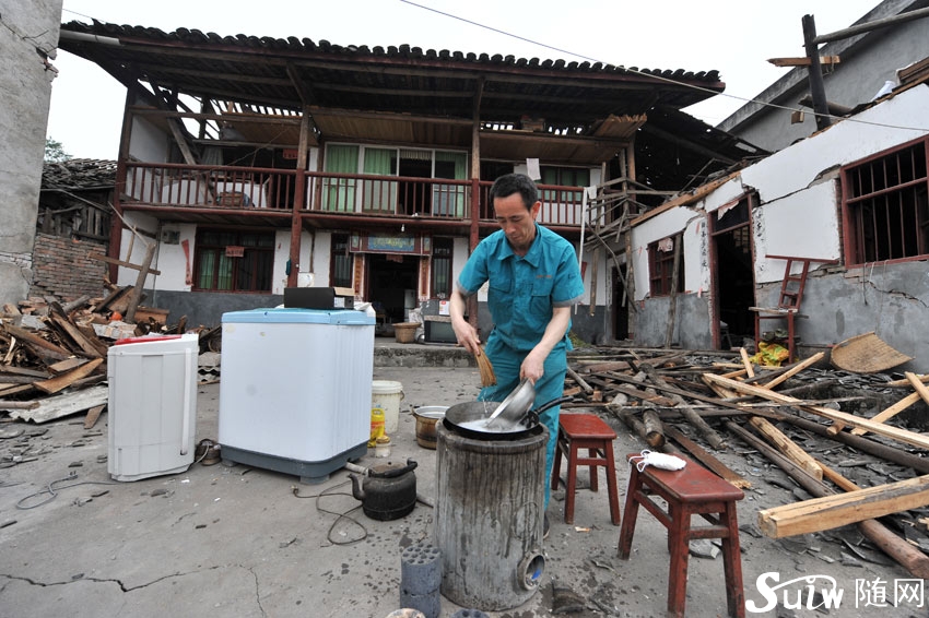 今天,在雅安地震重災(zāi)區(qū)蘆山縣龍門(mén)鄉(xiāng)古城村,村民們堅(jiān)強(qiáng)樂(lè)觀,團(tuán)結(jié)協(xié)作抗震自救。 古城村月光山組的駱馳正在房屋前的空地上搭建帳篷,張平書(shū)一家正在屋前空地上吃飯,見(jiàn)到記者便熱情地招呼記者到她家吃飯。他們告訴記者,地震后鄰里互助互救,他們覺(jué)得雖然遇到了災(zāi)難,但相信政府會(huì)來(lái)幫助他們。地震時(shí),武警官兵過(guò)來(lái)幫群眾搶救物資,大家都很感動(dòng)。 古城村任家崗組的任體蓮告訴人民網(wǎng)記者,目前蘆山縣古城村停電,村民倉(cāng)里有谷子但打不出米來(lái),他們需要柴油機(jī)的打米機(jī),可以自己打米來(lái)自給自足,就不用外界來(lái)供應(yīng)食物了。災(zāi)區(qū)村民正團(tuán)結(jié)一心共同抗擊地震。 在地震中,蘆山縣古城村高云珍的父親不幸遇難,面對(duì)記者的安慰,高云珍的母親說(shuō),要好好活下去。她家屋前的無(wú)花果樹(shù)非常茂盛,枝頭掛滿了累累果實(shí)。 蘆山縣古城村任家崗組的任大叔在屋前空地上刷洗炊具,地震時(shí)他在外地打工,地震后迅速趕回家里,現(xiàn)在把炊具和一些家用電器都搬到了房前空地上。 |