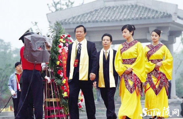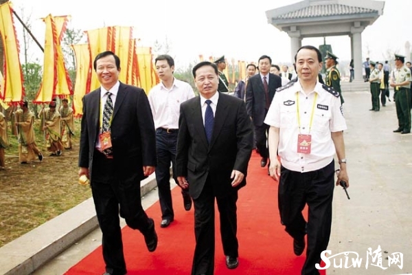 圖為 拜祖大典結束后,省委書記羅清泉(中)在市委書記馬清明(左),市委常委、政法委書記、公安局長萬學斌(右)等領導的陪同下,參觀炎帝神農故里新景區(qū)。