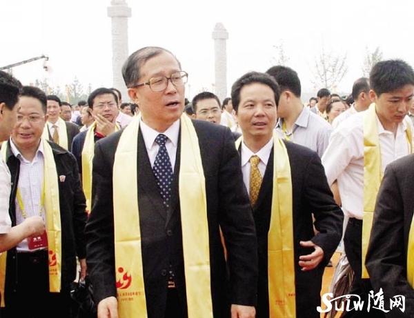 圖為 省長李鴻忠(前左一)在市長劉曉鳴(前右二)的陪同下,參觀炎帝神農故里新景區(qū)。