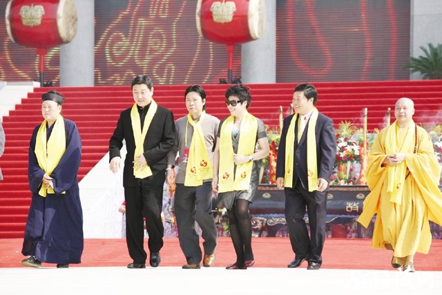 ◆北京師范大學(xué)教授于丹,省文聯(lián)副主席、著名作家熊召政,大洪山慈恩寺主持釋印順,湖北省道教協(xié)會會長吳誠真,著名歌手韓磊敬獻(xiàn)花籃。