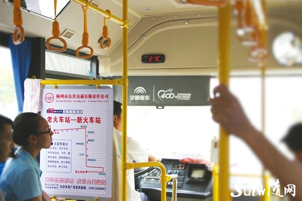 隨城一批新型空調(diào)公交車(chē)上路。目前主要集中在10路和16路線路。圖為16路公交車(chē)內(nèi),溫度為27℃。