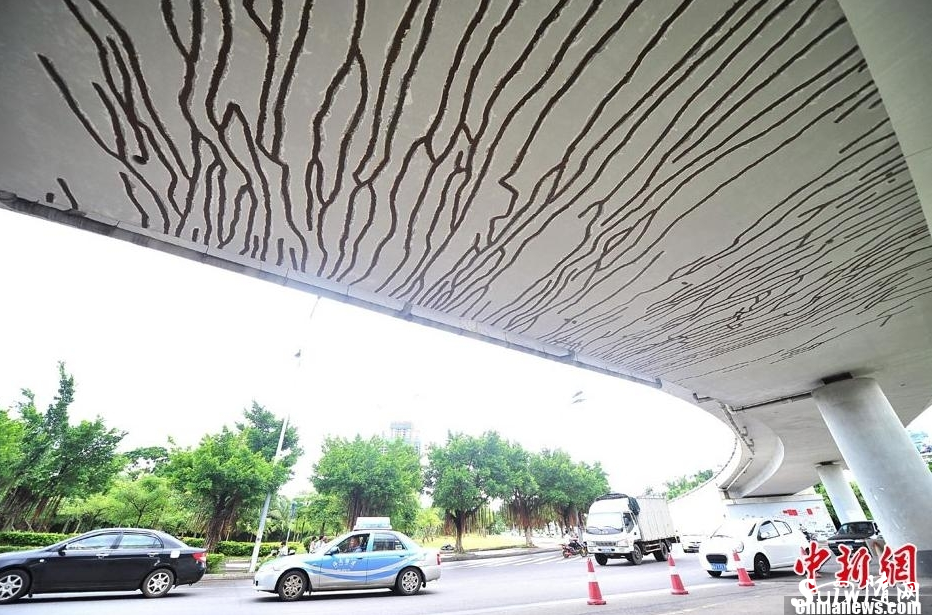近日,海口市南大橋國(guó)興大道引橋橋體出現(xiàn)200多條裂縫,有的裂縫寬度達(dá)到0.25毫米,還有裂縫長(zhǎng)度貫穿整個(gè)橋梁(100多米),大橋的出口處還出現(xiàn)凹陷路面。?谑袠蛄汗芾碛邢薰矩(fù)責(zé)人回應(yīng)稱不影響通車安全。中新社發(fā)