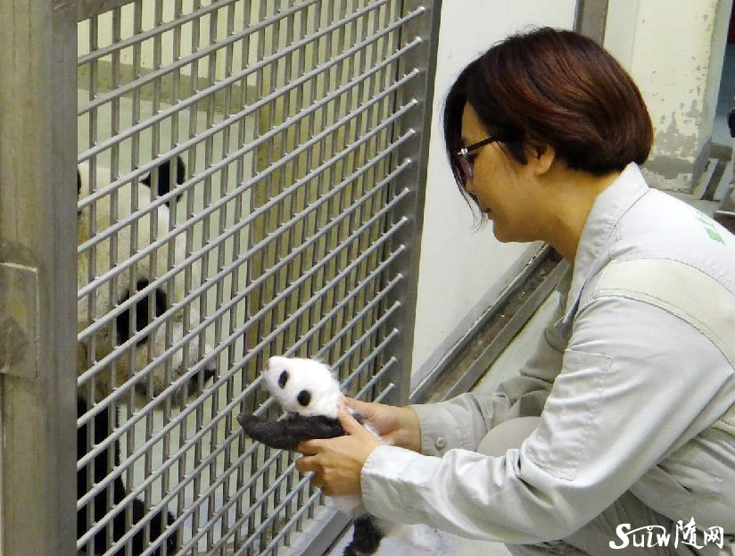 大熊貓“圓仔”(右)與媽媽“圓圓”相會(8月6日攝)。 大陸贈臺大熊貓“團團”和“圓圓”的首只寶寶“圓仔”在保育員的精心照顧下體重猛長,越來越顯現(xiàn)出大熊貓的憨態(tài)本色。近日,動物園還安排了“圓仔”與媽媽“圓圓”認親,母女相見分外親熱。 新華社發(fā)(臺北動物園提供)