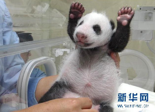 這是大陸贈臺大熊貓“圓圓” 7月6日產(chǎn)下的幼仔“圓仔”,當時183.4克(上圖),一月后現(xiàn)在體重已增至1347克(下圖,拼版照片)。自熊貓寶寶“圓仔”出生以來,臺灣動物園的保育員們24小時守在它的身邊照顧,隨時注意它的狀況,親歷了這個小寶寶從剛出生時的粉紅肉球到現(xiàn)在“迷你版”小熊貓。新華社發(fā)(臺北動物園提供)