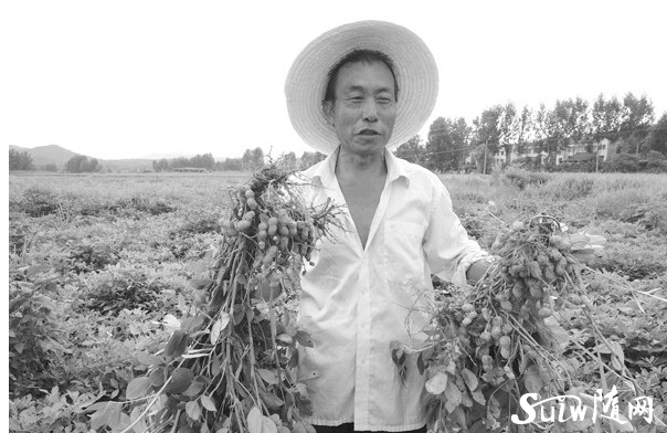 8月15日,隨縣小林鎮(zhèn)祝林村正在地里收花生的村民熊華中展示豐收的花生。該鎮(zhèn)是隨縣著名的花生之鄉(xiāng),今年全鎮(zhèn)通過調(diào)整種植結(jié)構(gòu),增加地膜花生面積,花生種植面積達(dá)到1萬畝,畝產(chǎn)接近500公斤,產(chǎn)值可達(dá)1800萬元。(記者 李文軍 通訊員 后 勇攝)