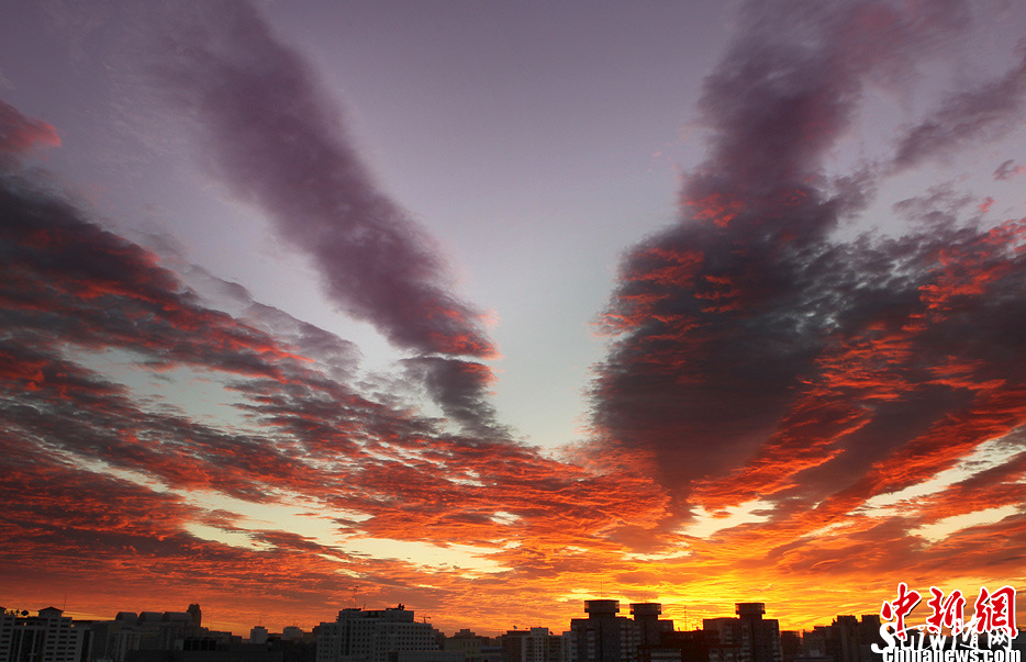 “火燒云”映紅北京 朝霞美景令人驚嘆