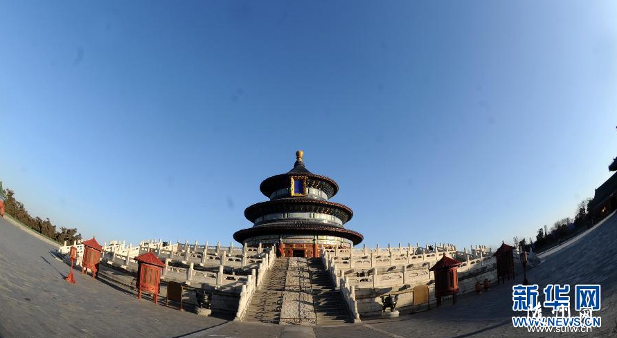 2014年2月27日,在藍(lán)天映襯下的北京天壇公園祈年殿。在空氣重污染預(yù)警持續(xù)生效156個(gè)小時(shí)后,北京迎來(lái)久違的藍(lán)天。近三年,北京遭遇過(guò)數(shù)次較嚴(yán)重的霧霾天氣,清風(fēng)送走霧霾,數(shù)次離別,愿再不相見(jiàn)。 新華社記者 公磊 攝