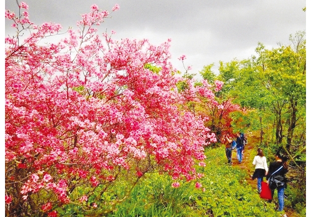 人間四月天,殷店賞杜鵑。4月26日,“騎行天下”俱樂(lè)部40余名車(chē)友、“驢友”騎行到隨縣殷店鎮(zhèn)鸚鵡觀,登山賞杜鵑。