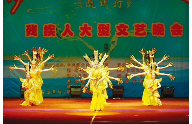 昨晚,省殘疾人藝術(shù)團(tuán)“夢(mèng)圓荊楚”殘疾人大型文藝巡回演出首演在我市舉行。該活動(dòng)由省委宣傳部、省殘聯(lián)等八部門(mén)聯(lián)合主辦,在“全國(guó)助殘日”期間,赴全省巡回演出。(記者 李文軍 攝)