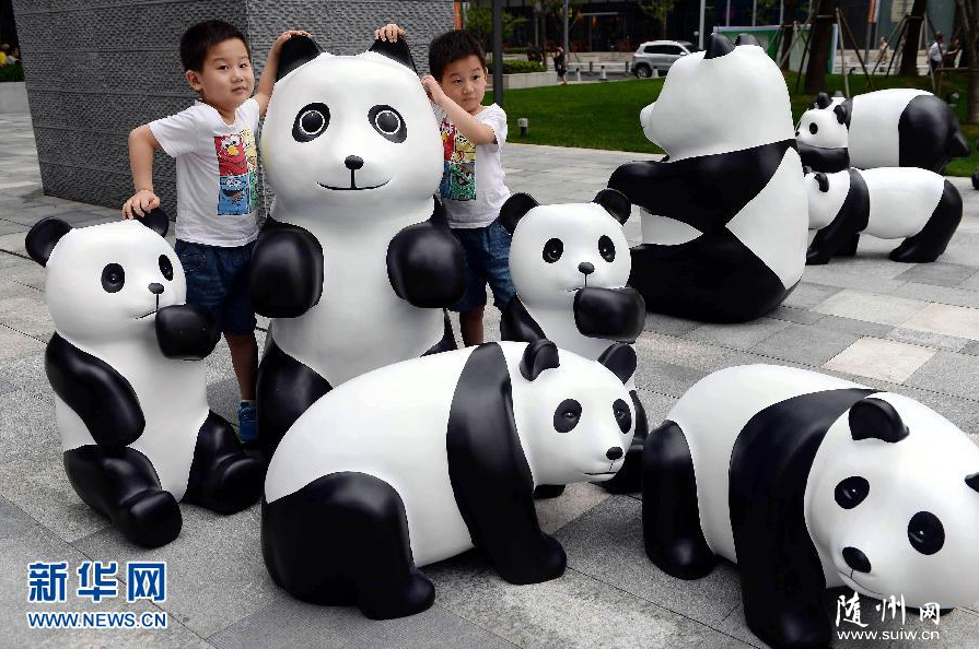 6月2日,兩名小朋友在上海靜安嘉里中心廣場(chǎng)內(nèi)和“熊貓”合影。 當(dāng)日,“1St panda”熊貓展在上海靜安嘉里中心廣場(chǎng)開幕,100只萌態(tài)百出的“熊貓”集體亮相,惹人喜愛。據(jù)悉,這些“大熊貓”由毛竹的邊角料制作而成,旨在喚起人們重視環(huán)境保護(hù)。新華社發(fā)(賴鑫琳 攝)