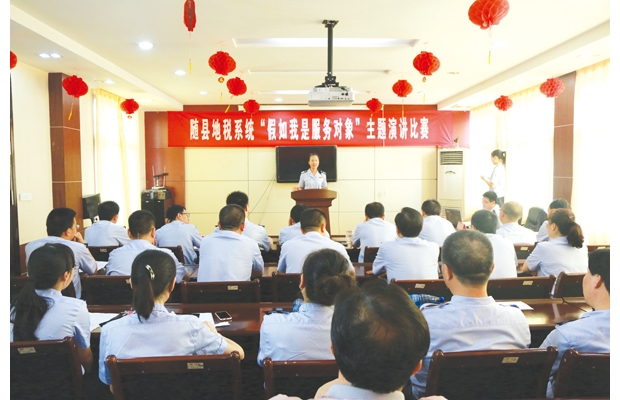 日前,隨縣地稅局舉辦了一場以“假如我是服務(wù)對象”為主題的演講比賽,通過演講比賽活動,進一步增強了隨縣地稅干部立足本職、轉(zhuǎn)變作風、做好服務(wù)工作的責任感和使命感,在全系統(tǒng)形成了一個“感恩納稅人、關(guān)愛納稅人、善待納稅人、服務(wù)納稅人”的良好風氣。 (李永久 黃練攝)