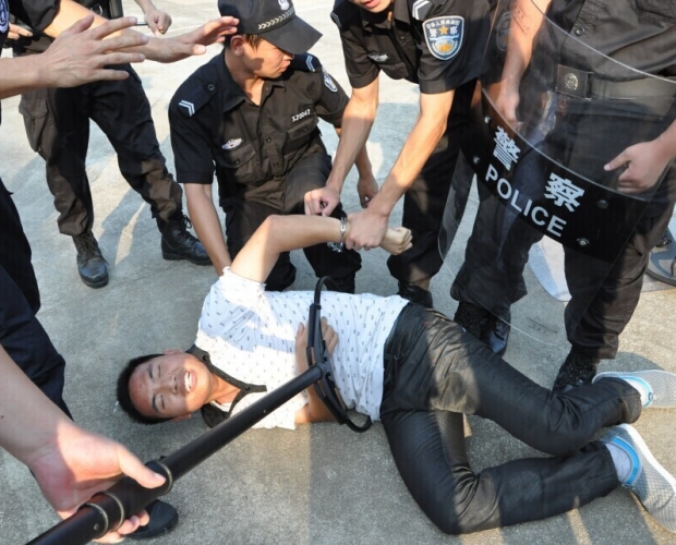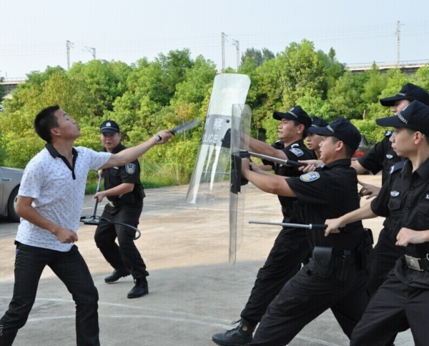 當(dāng)日17時(shí),一名“暴恐分子”悄悄走到正在厲山鎮(zhèn)神農(nóng)廣場(chǎng)游玩的群眾身邊,突然抽出隨身攜帶的長(zhǎng)刀揮砍,場(chǎng)面十分危急。過(guò)往群眾大驚失色,紛紛逃跑并大聲呼救。接到報(bào)警后,指揮中心迅速指令巡邏、交警、派出所等多警種,共計(jì)30名民警組成的應(yīng)急分隊(duì)隊(duì)員攜帶警械武器趕到現(xiàn)場(chǎng)。演練總指揮陳友元政委現(xiàn)場(chǎng)組織參戰(zhàn)的巡邏大隊(duì)警員負(fù)責(zé)圍捕暴恐分子,其他應(yīng)急隊(duì)員負(fù)責(zé)疏散群眾,疏導(dǎo)交通。接到“抓捕”口令后,三名手持盾牌的巡邏隊(duì)員沖在最前面擋住“暴恐分子”,一名持鎖腰鋼叉的隊(duì)員利用空檔將其腰部鎖住拖翻在地,隨后,巡邏隊(duì)員一哄而上,將“暴恐分子”死死摁倒在地,并將其制服,事件得到有效處置。